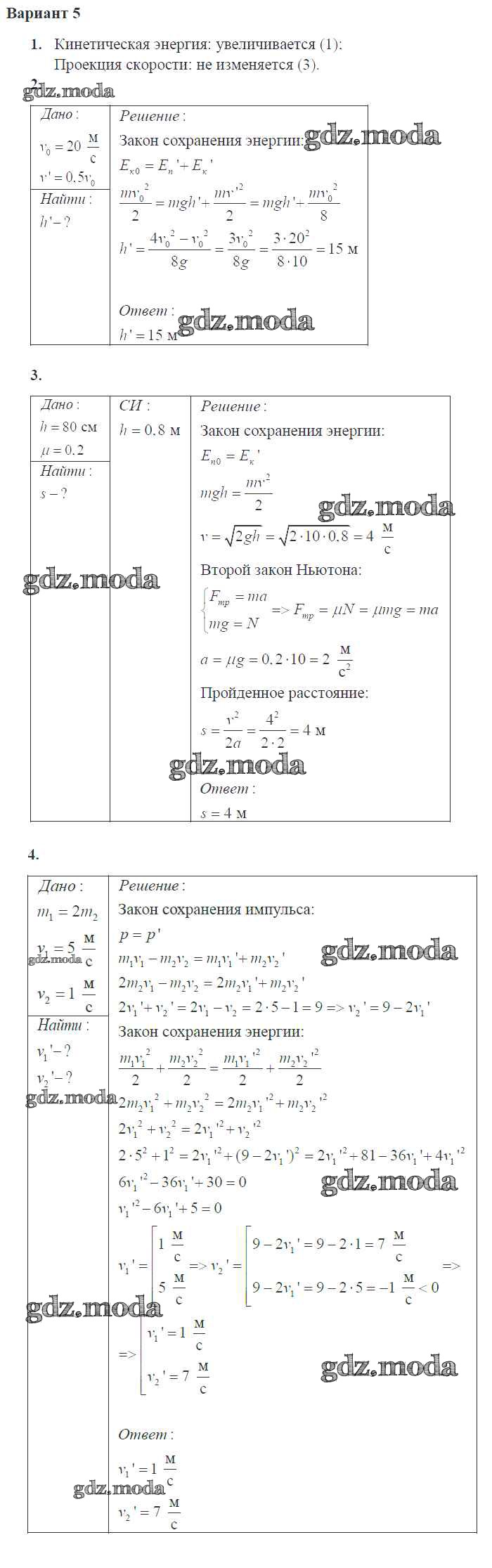 ГДЗ решение к заданию № 5 Физика 10 класс самостоятельные и контрольные работы Ерюткин Е.С. Просвещение 2018 Базовый и углубленный уровень ФГОС бесплатно на гдз.мода!