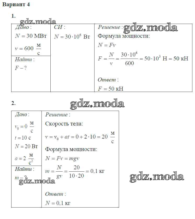 ГДЗ решение к заданию № 4 Физика 10 класс самостоятельные и контрольные работы Ерюткин Е.С. Просвещение 2018 Базовый и углубленный уровень ФГОС бесплатно на гдз.мода!