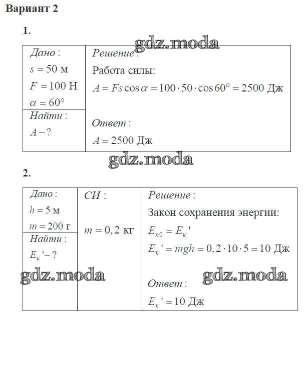 ГДЗ решение к заданию № 2 Физика 10 класс самостоятельные и контрольные работы Ерюткин Е.С. Просвещение 2018 Базовый и углубленный уровень ФГОС бесплатно на гдз.мода!
