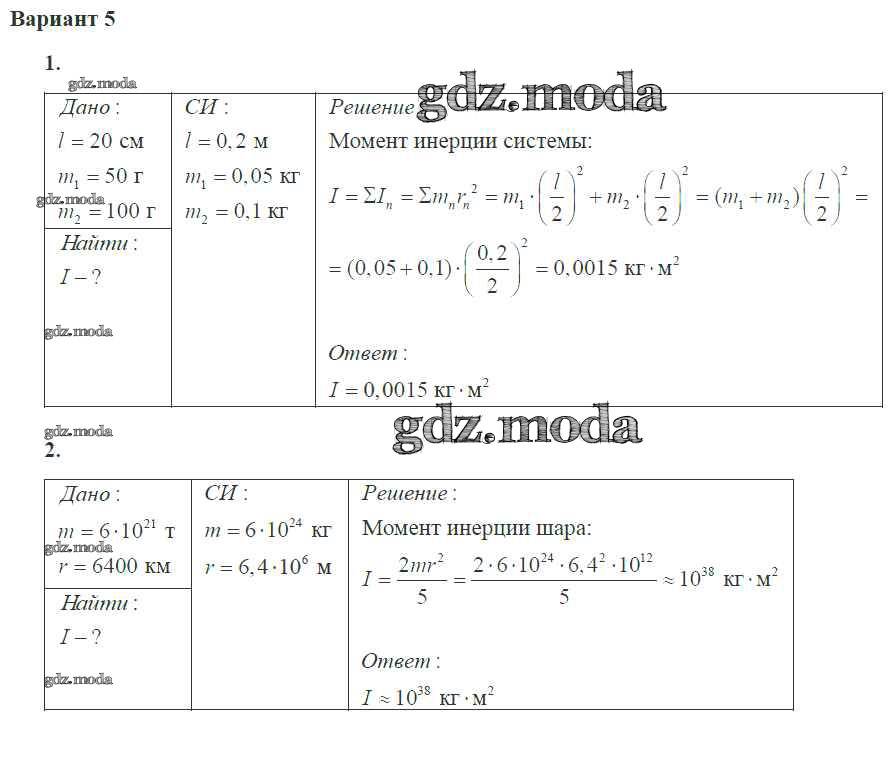ГДЗ решение к заданию № 5 Физика 10 класс самостоятельные и контрольные работы Ерюткин Е.С. Просвещение 2018 Базовый и углубленный уровень ФГОС бесплатно на гдз.мода!