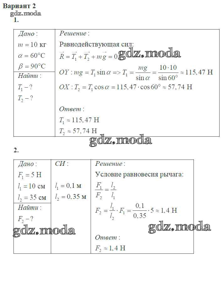 ГДЗ решение к заданию № 2 Физика 10 класс самостоятельные и контрольные работы Ерюткин Е.С. Просвещение 2018 Базовый и углубленный уровень ФГОС бесплатно на гдз.мода!