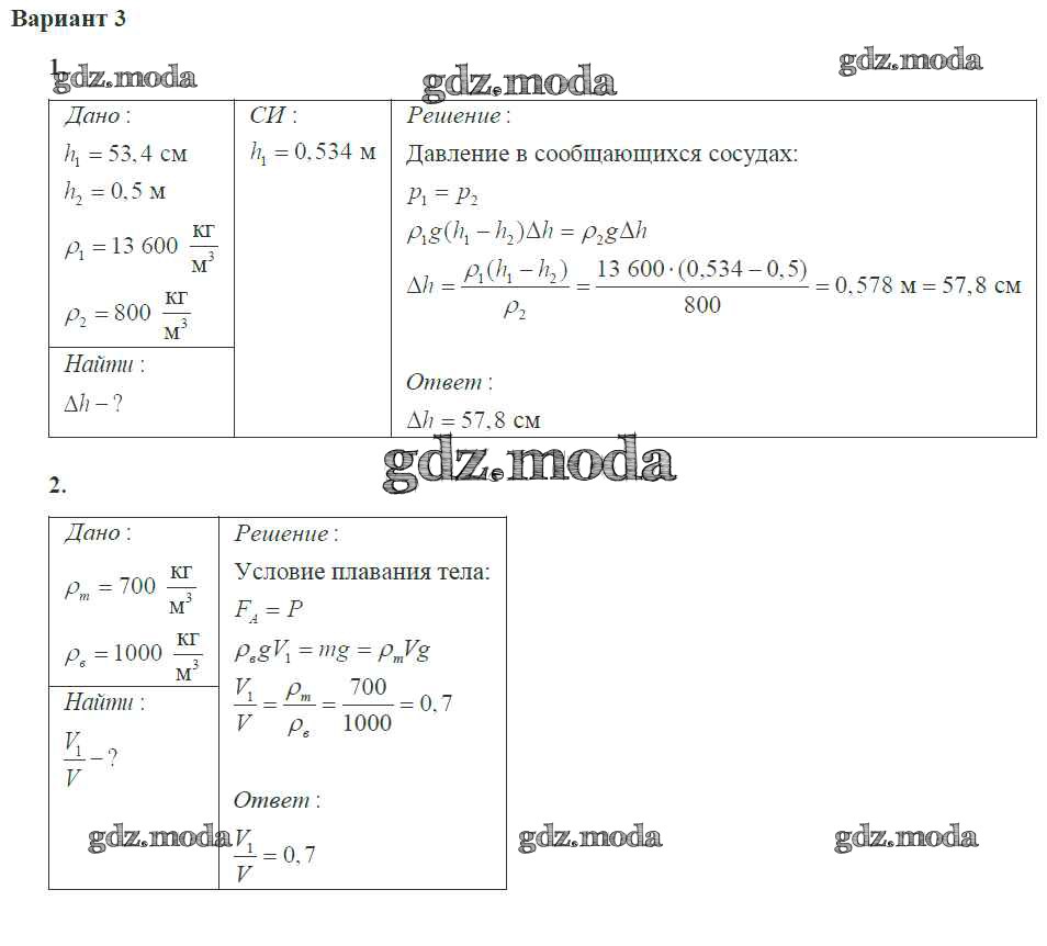 ГДЗ решение к заданию № 3 Физика 10 класс самостоятельные и контрольные работы Ерюткин Е.С. Просвещение 2018 Базовый и углубленный уровень ФГОС бесплатно на гдз.мода!
