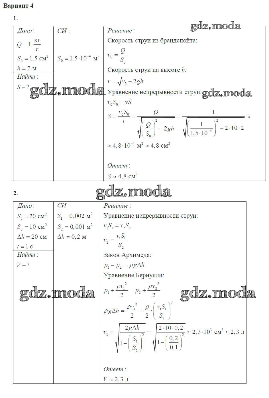 ГДЗ решение к заданию № 4 Физика 10 класс самостоятельные и контрольные работы Ерюткин Е.С. Просвещение 2018 Базовый и углубленный уровень ФГОС бесплатно на гдз.мода!