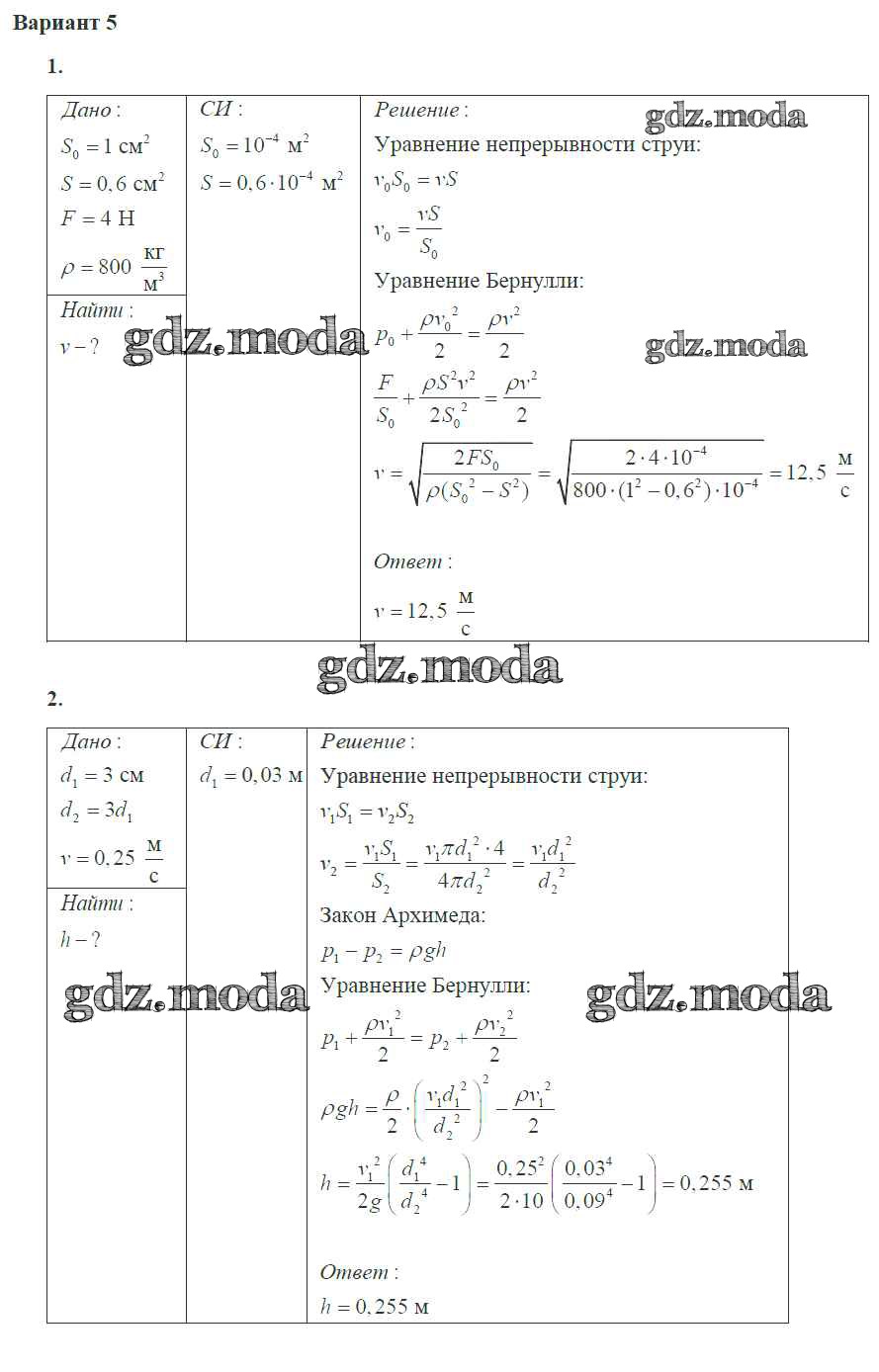 ГДЗ решение к заданию № 5 Физика 10 класс самостоятельные и контрольные работы Ерюткин Е.С. Просвещение 2018 Базовый и углубленный уровень ФГОС бесплатно на гдз.мода!