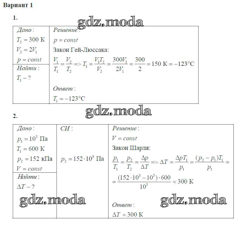 ГДЗ решение к заданию № 1 Физика 10 класс самостоятельные и контрольные работы Ерюткин Е.С. Просвещение 2018 Базовый и углубленный уровень ФГОС бесплатно на гдз.мода!