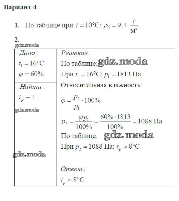 ГДЗ решение к заданию № 4 Физика 10 класс самостоятельные и контрольные работы Ерюткин Е.С. Просвещение 2018 Базовый и углубленный уровень ФГОС бесплатно на гдз.мода!