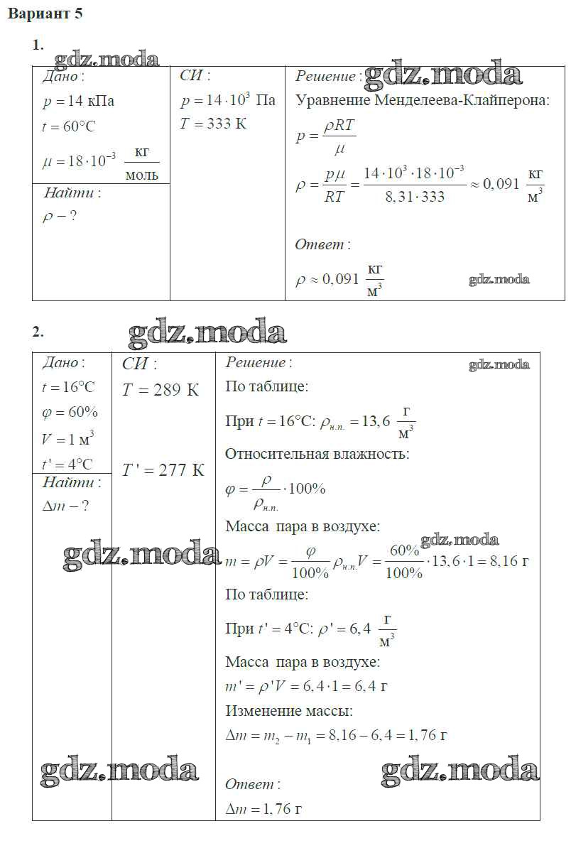 ГДЗ решение к заданию № 5 Физика 10 класс самостоятельные и контрольные работы Ерюткин Е.С. Просвещение 2018 Базовый и углубленный уровень ФГОС бесплатно на гдз.мода!