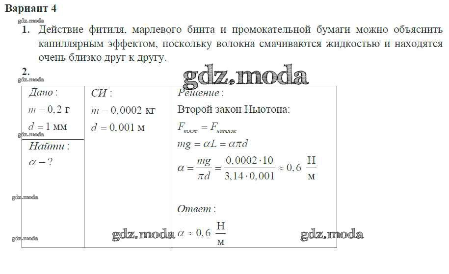 ГДЗ решение к заданию № 4 Физика 10 класс самостоятельные и контрольные работы Ерюткин Е.С. Просвещение 2018 Базовый и углубленный уровень ФГОС бесплатно на гдз.мода!