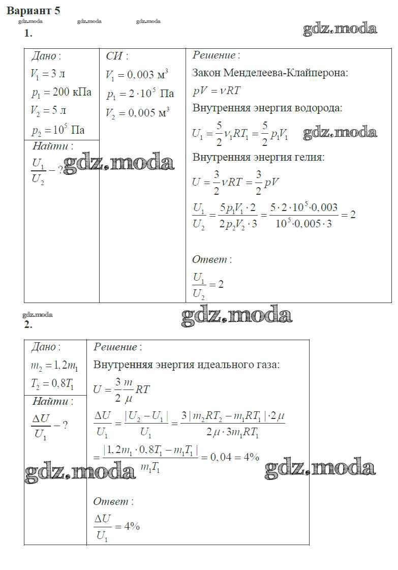 ГДЗ решение к заданию № 5 Физика 10 класс самостоятельные и контрольные работы Ерюткин Е.С. Просвещение 2018 Базовый и углубленный уровень ФГОС бесплатно на гдз.мода!