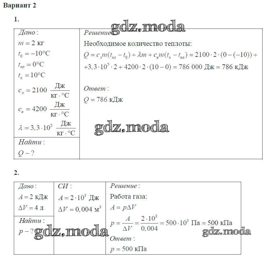ГДЗ решение к заданию № 2 Физика 10 класс самостоятельные и контрольные работы Ерюткин Е.С. Просвещение 2018 Базовый и углубленный уровень ФГОС бесплатно на гдз.мода!
