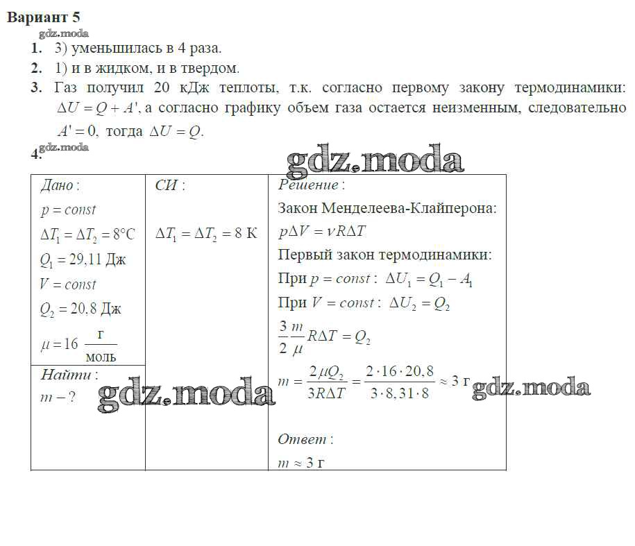 ГДЗ решение к заданию № 5 Физика 10 класс самостоятельные и контрольные работы Ерюткин Е.С. Просвещение 2018 Базовый и углубленный уровень ФГОС бесплатно на гдз.мода!