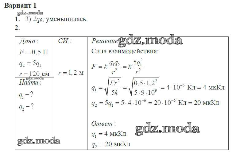 ГДЗ решение к заданию № 1 Физика 10 класс самостоятельные и контрольные работы Ерюткин Е.С. Просвещение 2018 Базовый и углубленный уровень ФГОС бесплатно на гдз.мода!