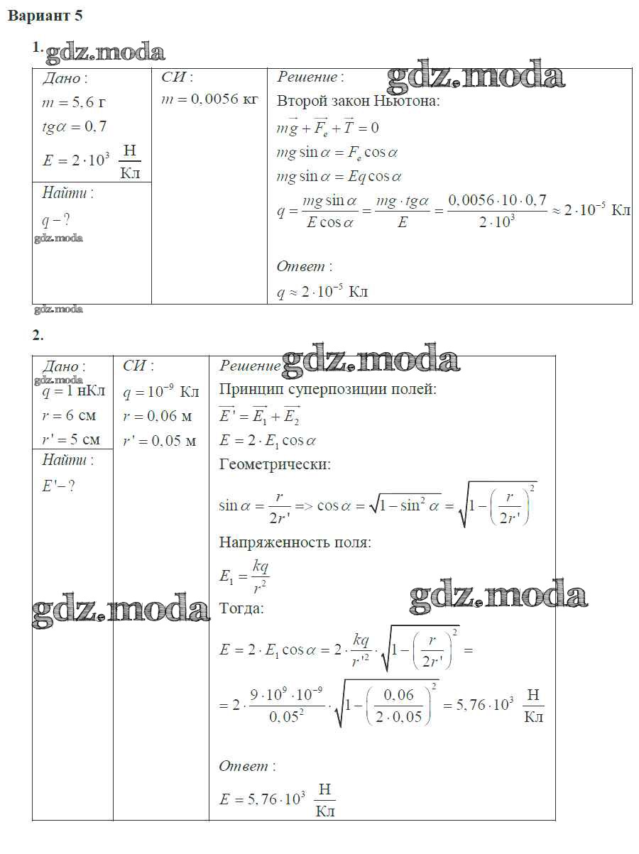 ГДЗ решение к заданию № 5 Физика 10 класс самостоятельные и контрольные работы Ерюткин Е.С. Просвещение 2018 Базовый и углубленный уровень ФГОС бесплатно на гдз.мода!