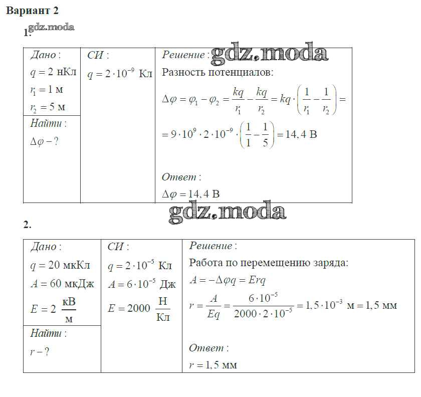 ГДЗ решение к заданию № 2 Физика 10 класс самостоятельные и контрольные работы Ерюткин Е.С. Просвещение 2018 Базовый и углубленный уровень ФГОС бесплатно на гдз.мода!