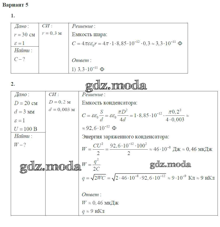 ГДЗ решение к заданию № 5 Физика 10 класс самостоятельные и контрольные работы Ерюткин Е.С. Просвещение 2018 Базовый и углубленный уровень ФГОС бесплатно на гдз.мода!