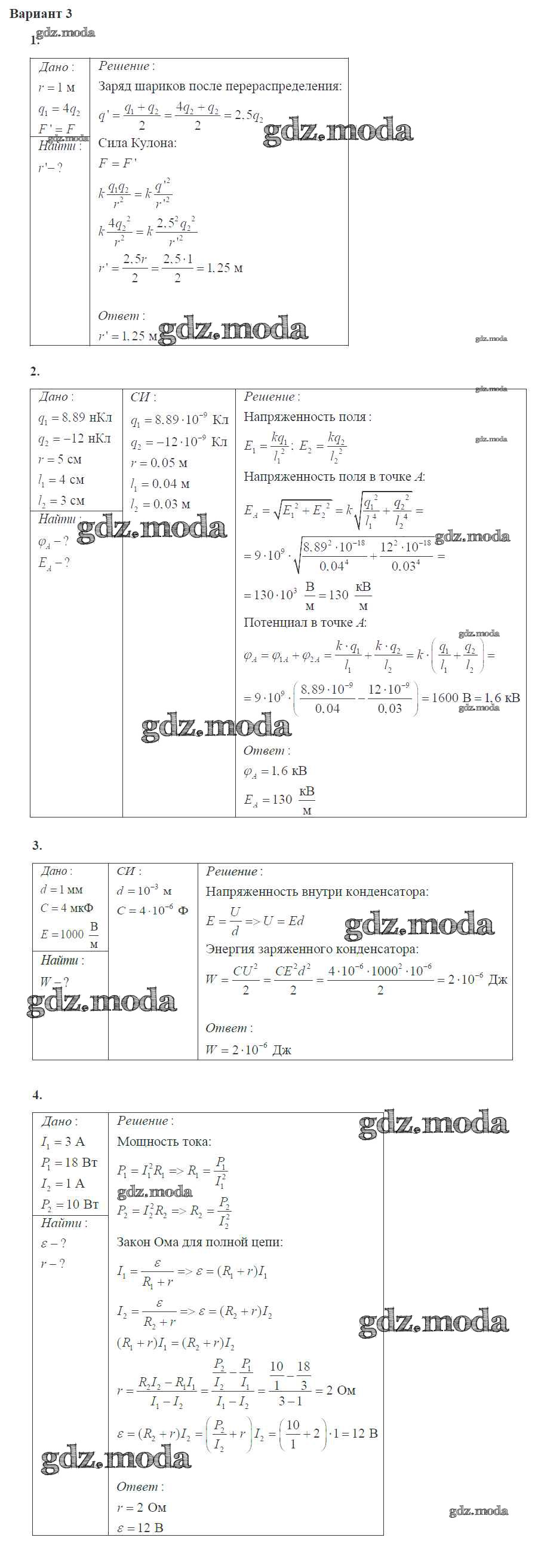 ГДЗ решение к заданию № 3 Физика 10 класс самостоятельные и контрольные работы Ерюткин Е.С. Просвещение 2018 Базовый и углубленный уровень ФГОС бесплатно на гдз.мода!