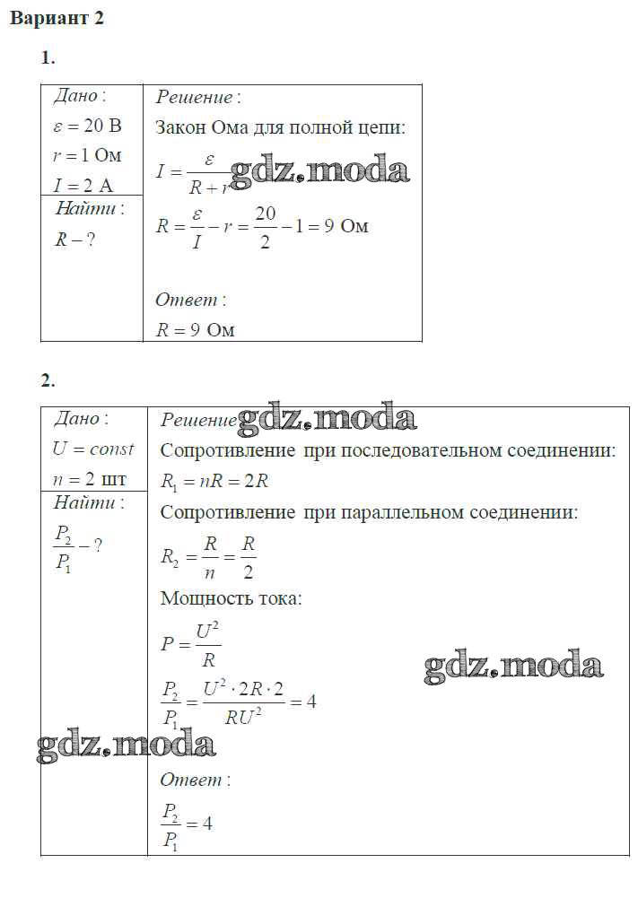 ГДЗ решение к заданию № 2 Физика 10 класс самостоятельные и контрольные работы Ерюткин Е.С. Просвещение 2018 Базовый и углубленный уровень ФГОС бесплатно на гдз.мода!