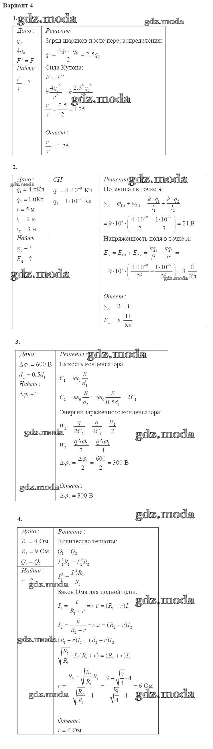 ГДЗ решение к заданию № 4 Физика 10 класс самостоятельные и контрольные работы Ерюткин Е.С. Просвещение 2018 Базовый и углубленный уровень ФГОС бесплатно на гдз.мода!