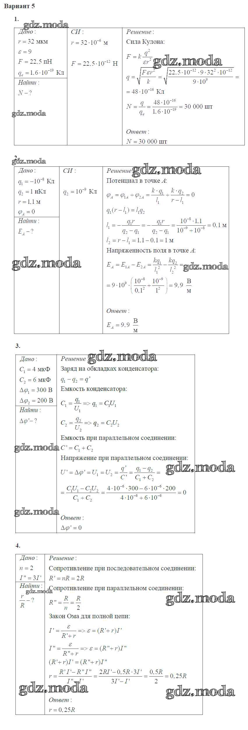 ГДЗ решение к заданию № 5 Физика 10 класс самостоятельные и контрольные работы Ерюткин Е.С. Просвещение 2018 Базовый и углубленный уровень ФГОС бесплатно на гдз.мода!