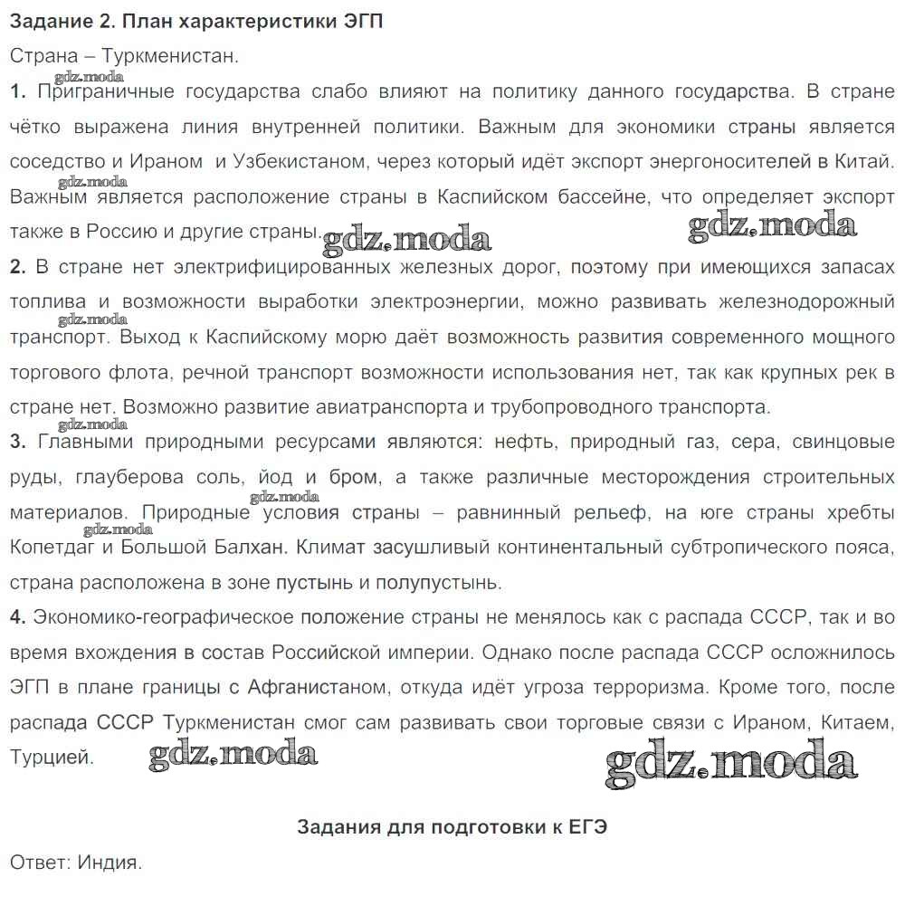 ОТВЕТ на задание № 18 Рабочая тетрадь по Географии 10 класс Сиротин УМК