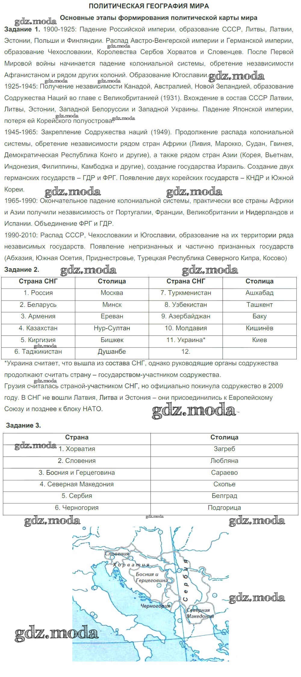 ГДЗ решение к заданию № 2 География 10 класс рабочая тетрадь Сиротин В.И. Дрофа 2019 ФГОС бесплатно на гдз.мода!