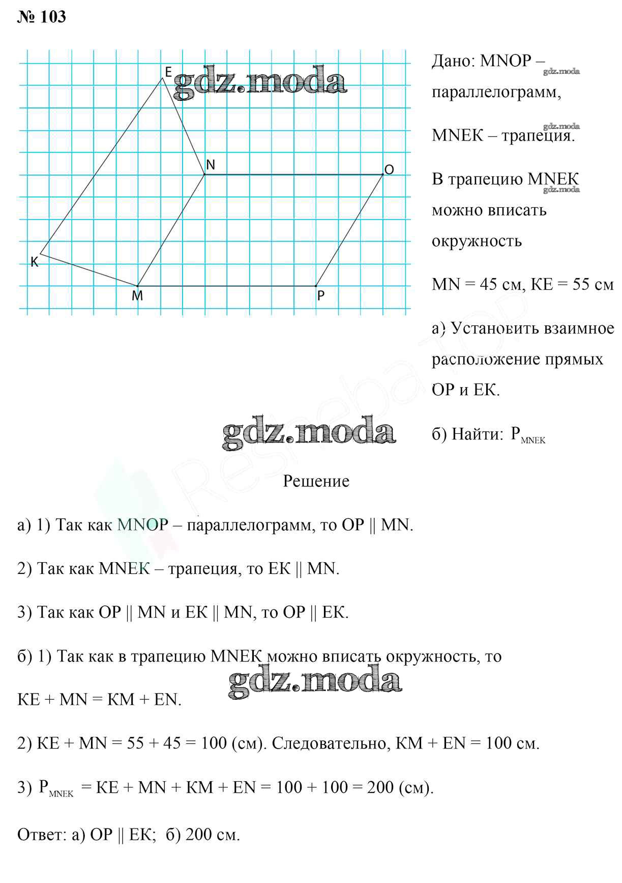 ОТВЕТ на задание № 103 Учебник по Геометрии 10 класс Латотин
