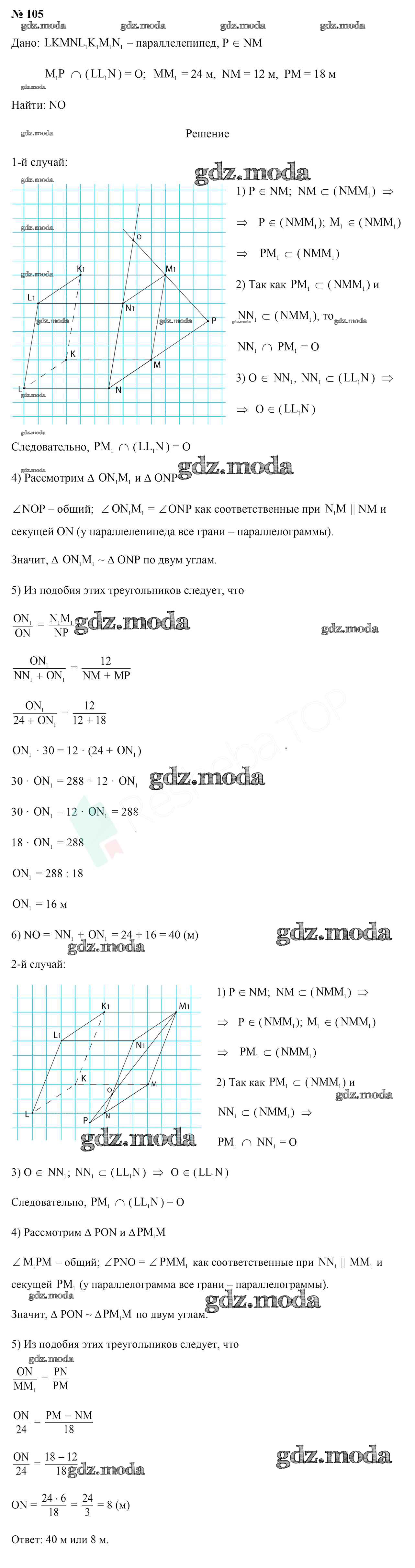 ОТВЕТ на задание № 105 Учебник по Геометрии 10 класс Латотин