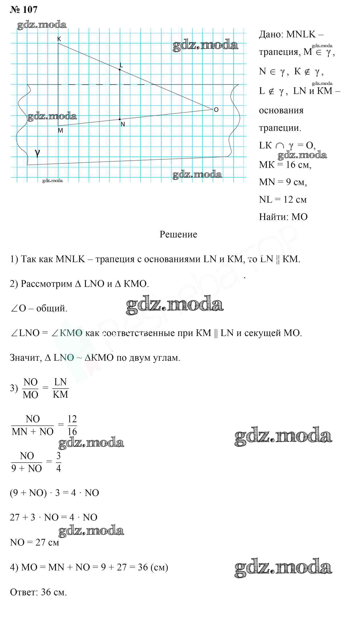 ОТВЕТ на задание № 107 Учебник по Геометрии 10 класс Латотин