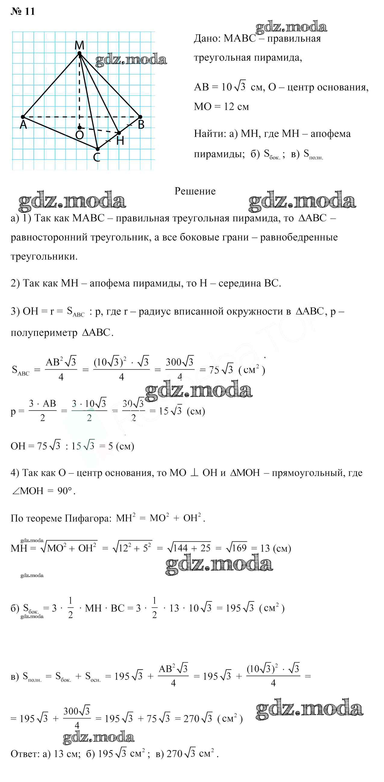 ОТВЕТ на задание № 11 Учебник по Геометрии 10 класс Латотин