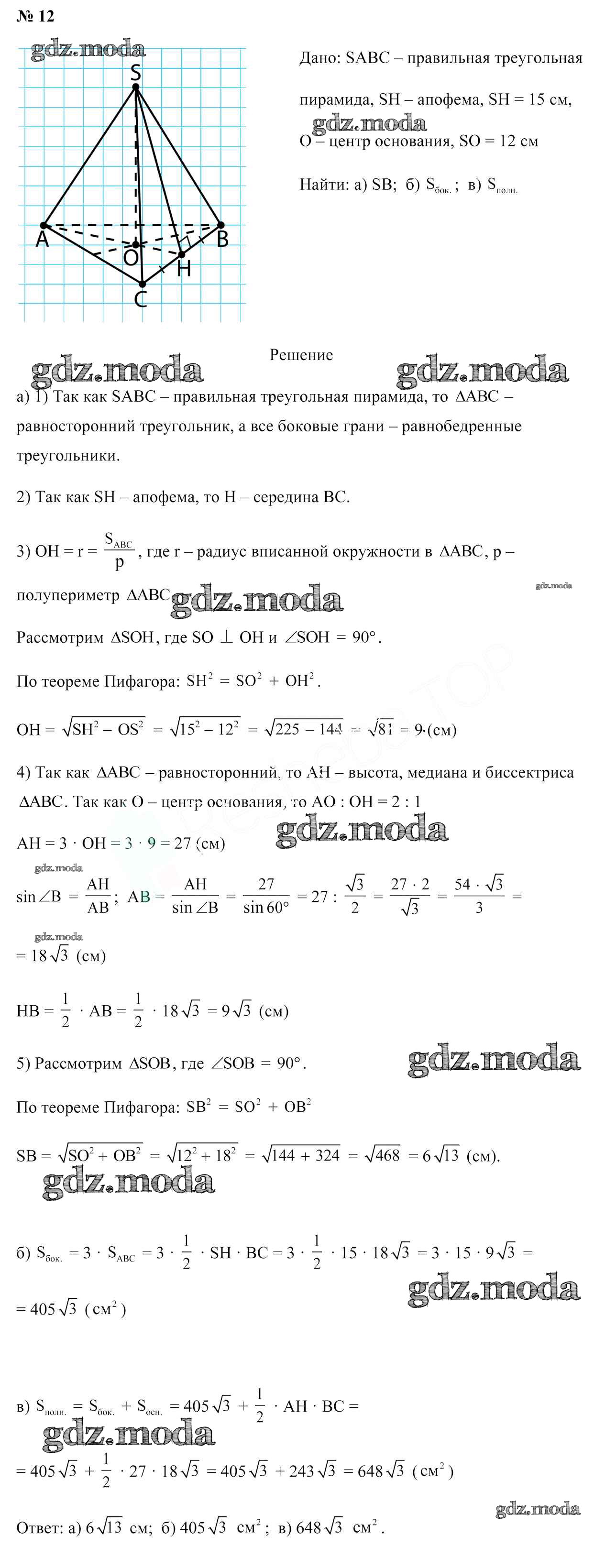 ОТВЕТ на задание № 12 Учебник по Геометрии 10 класс Латотин