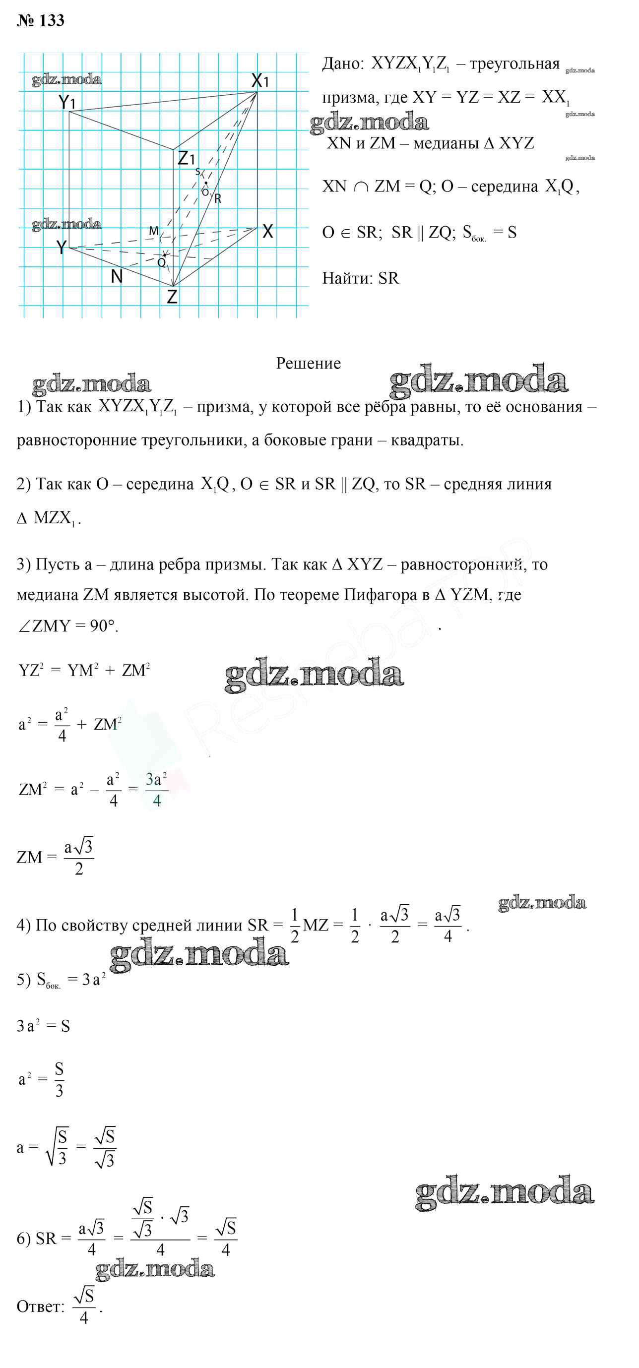 ОТВЕТ на задание № 133 Учебник по Геометрии 10 класс Латотин