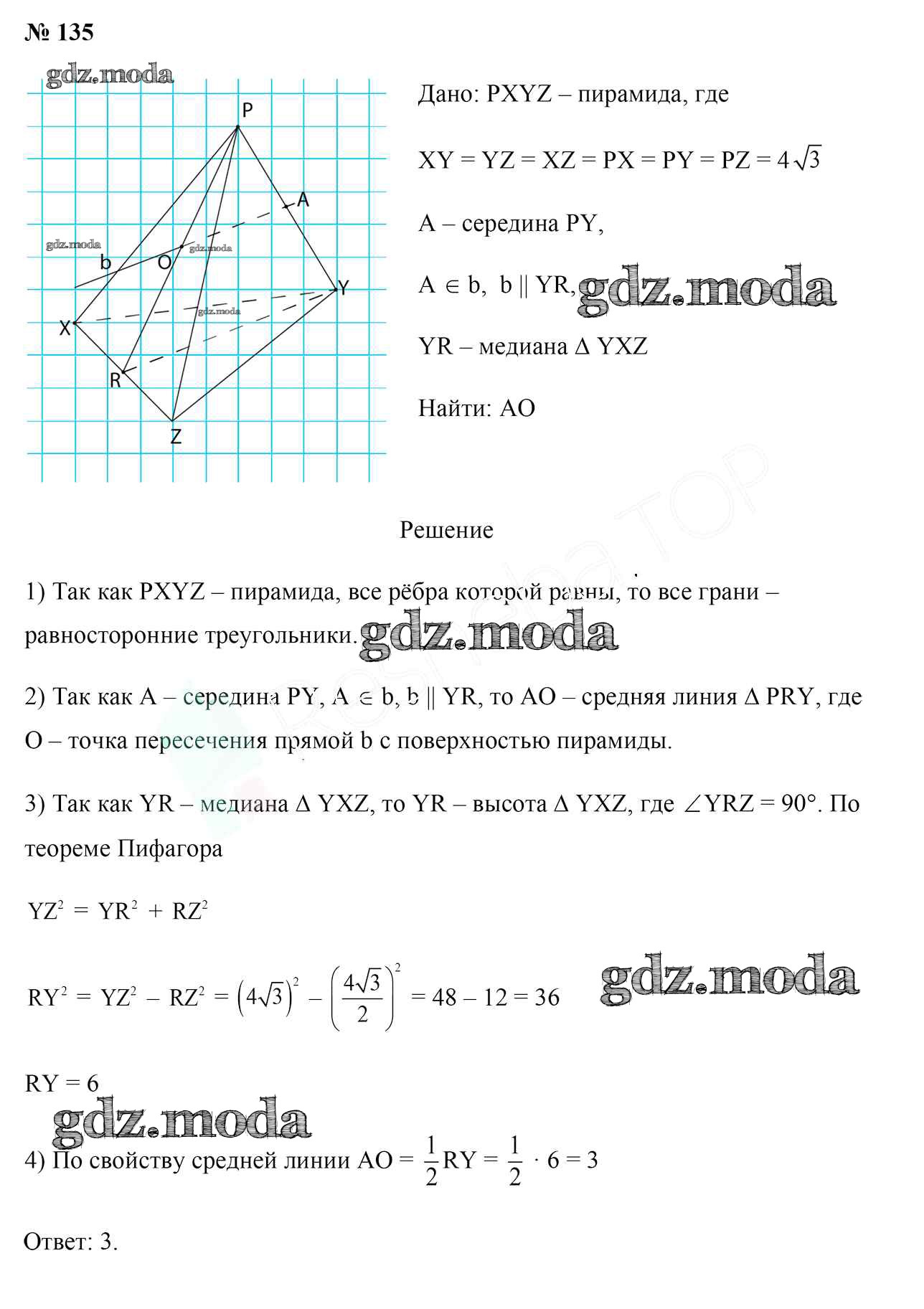 ОТВЕТ на задание № 135 Учебник по Геометрии 10 класс Латотин