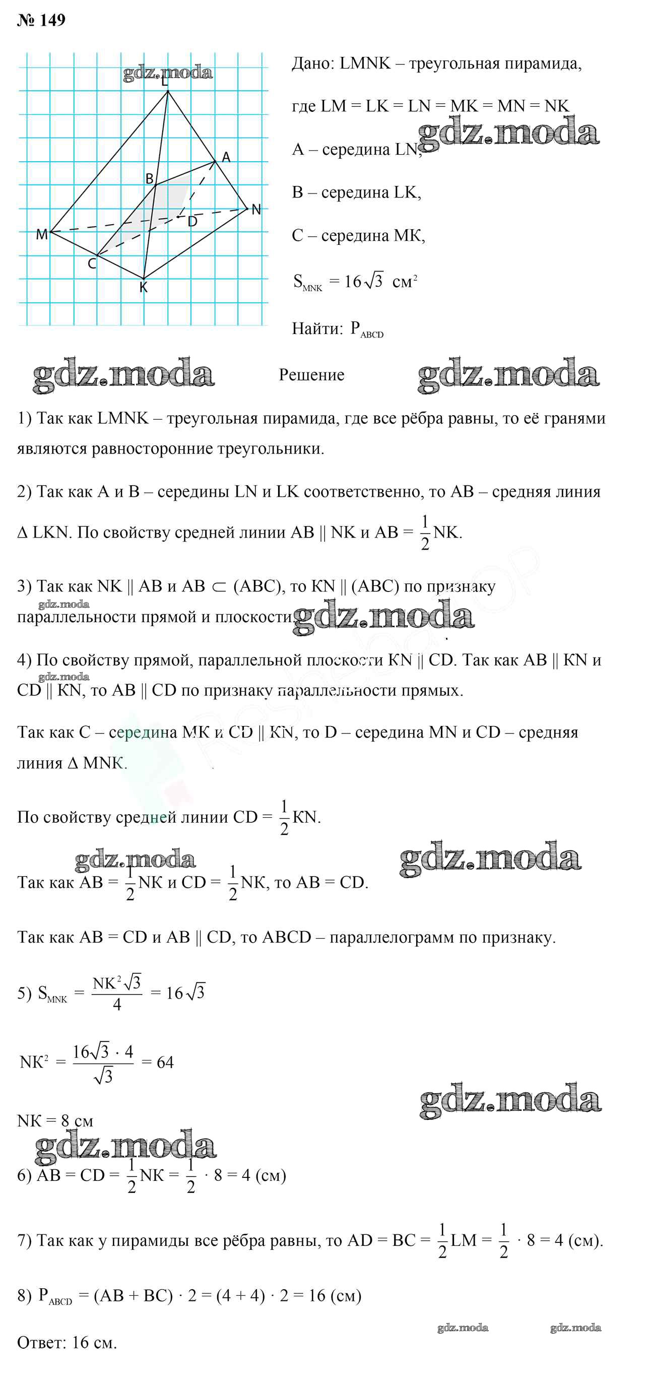 ОТВЕТ на задание № 149 Учебник по Геометрии 10 класс Латотин