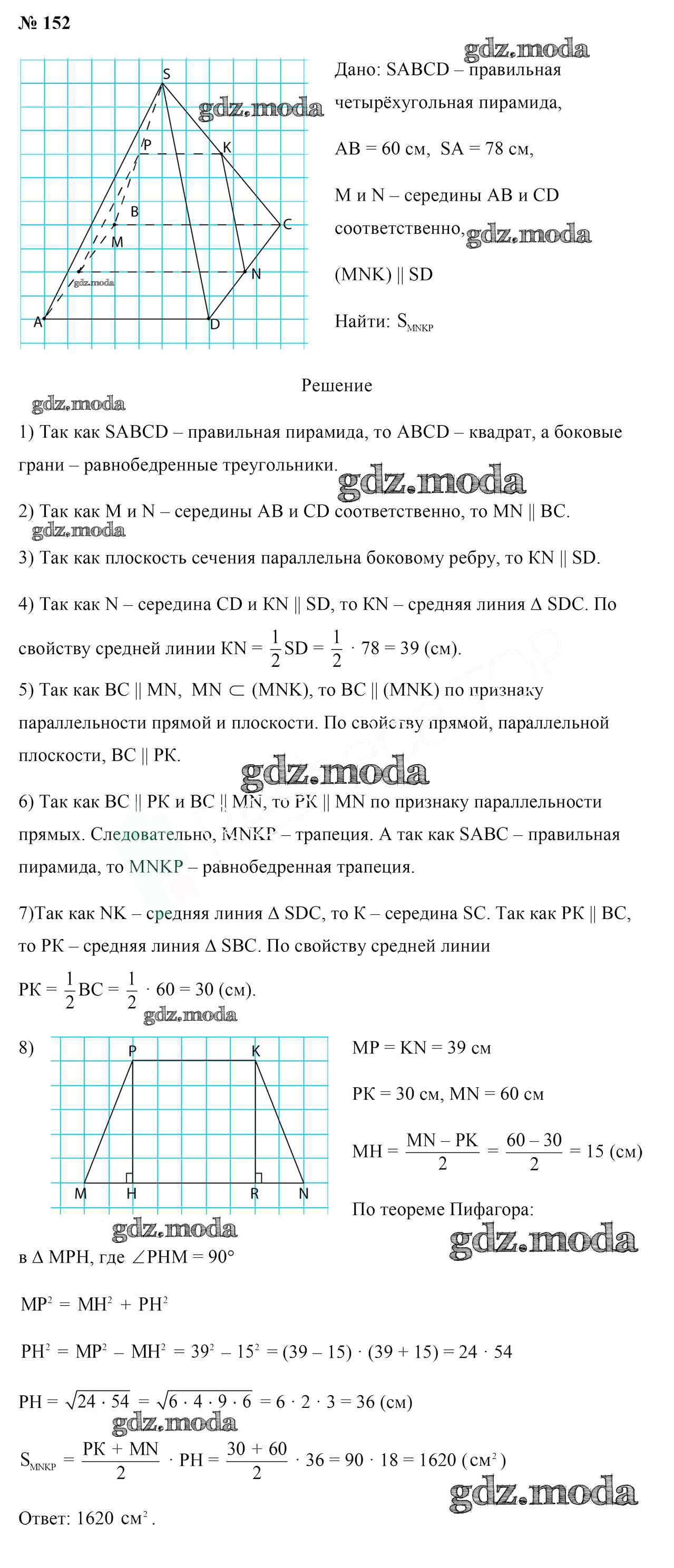 ОТВЕТ на задание № 152 Учебник по Геометрии 10 класс Латотин