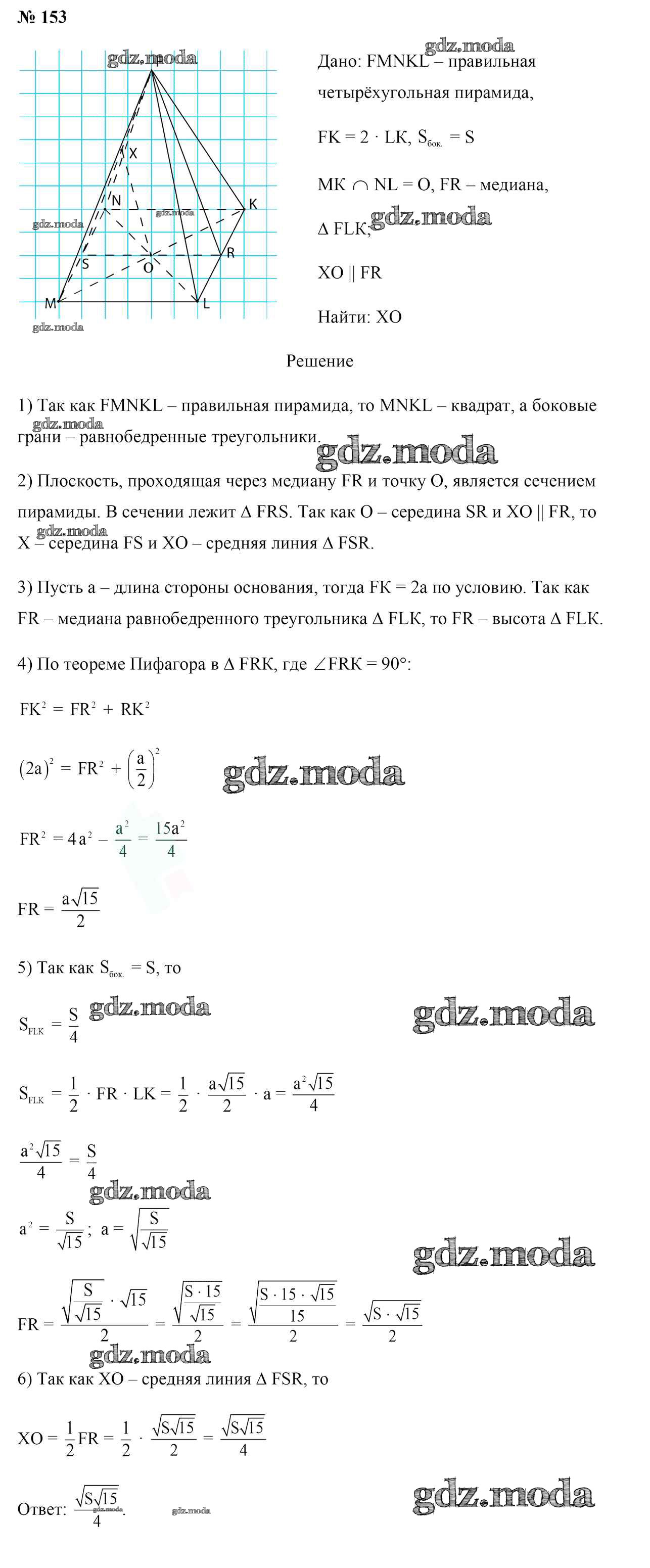 ОТВЕТ на задание № 153 Учебник по Геометрии 10 класс Латотин