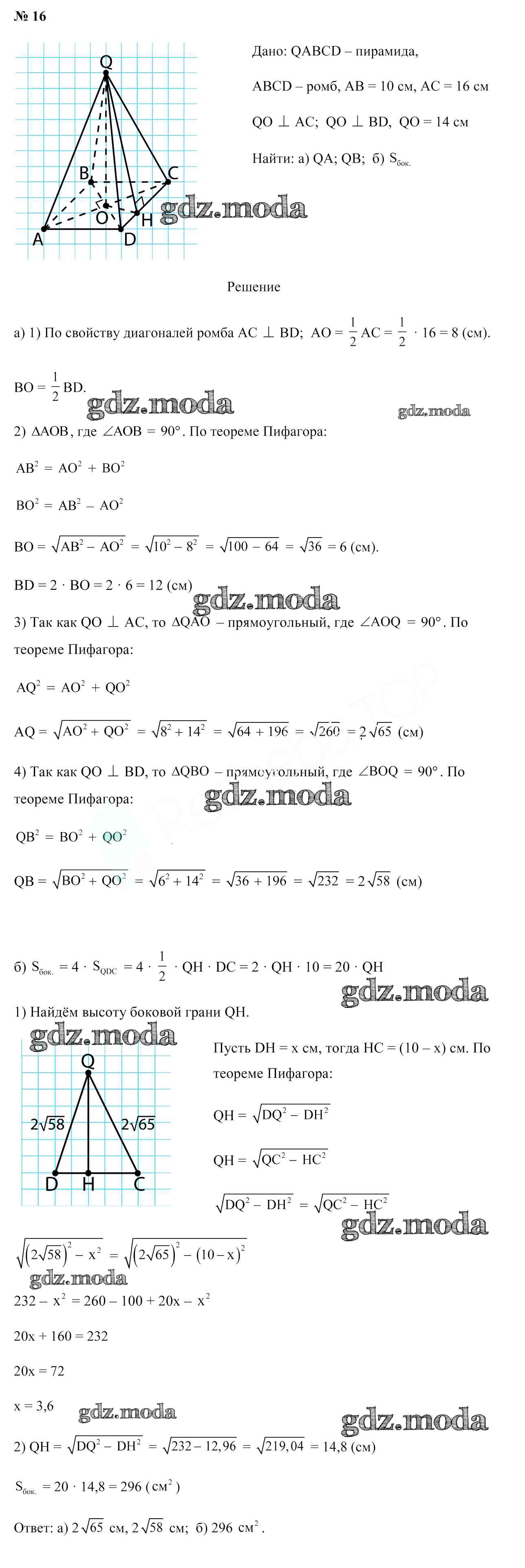 ОТВЕТ на задание № 16 Учебник по Геометрии 10 класс Латотин