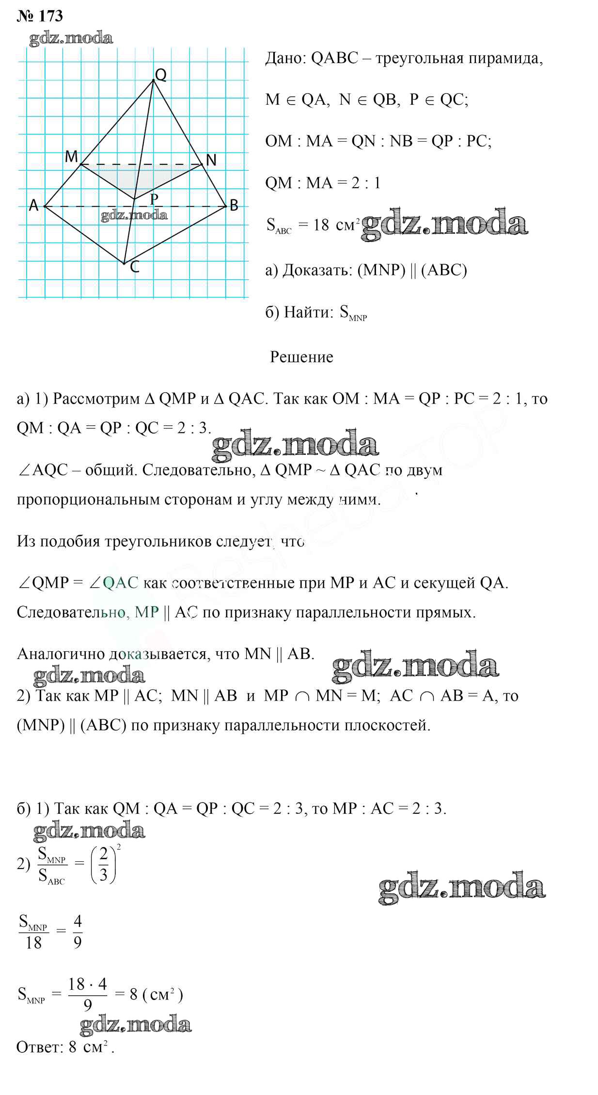 ОТВЕТ на задание № 173 Учебник по Геометрии 10 класс Латотин