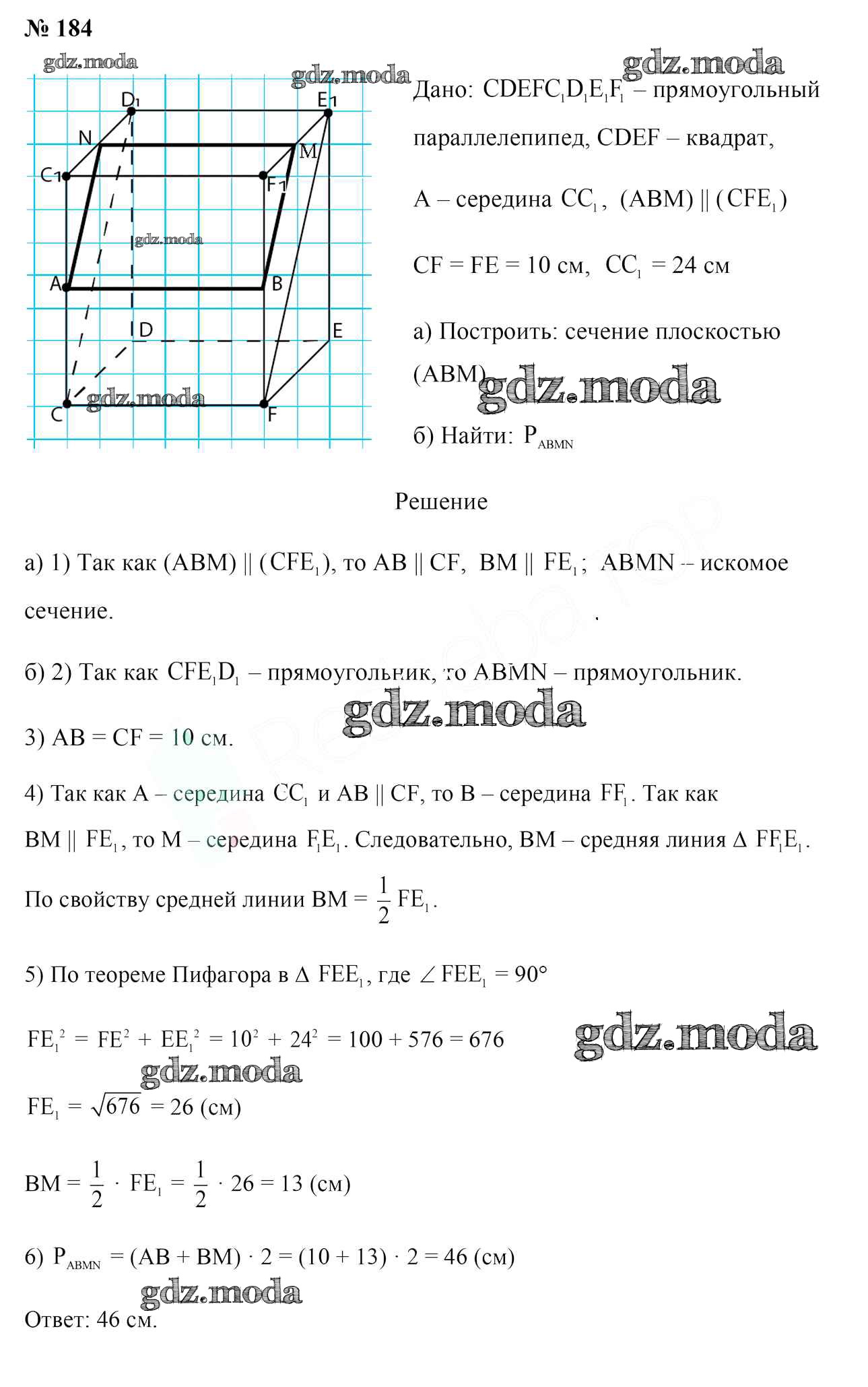 ОТВЕТ на задание № 184 Учебник по Геометрии 10 класс Латотин