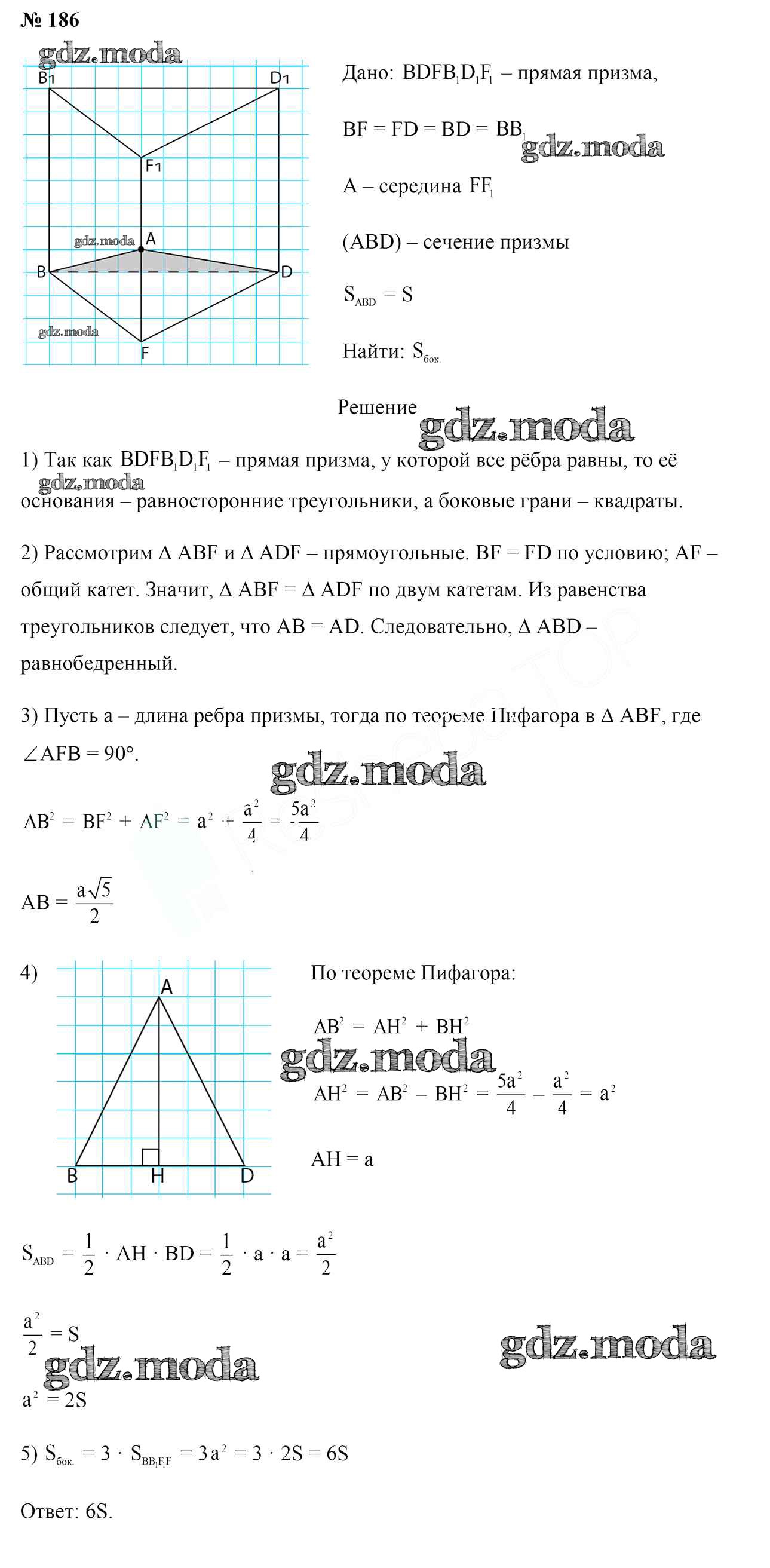 ОТВЕТ на задание № 186 Учебник по Геометрии 10 класс Латотин