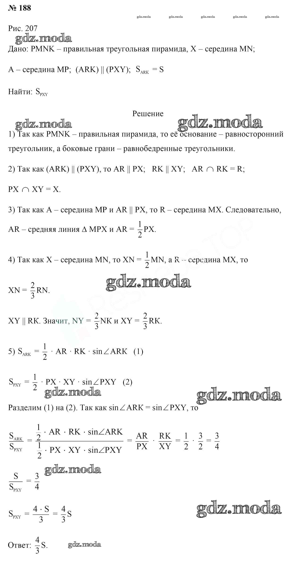 ОТВЕТ на задание № 188 Учебник по Геометрии 10 класс Латотин