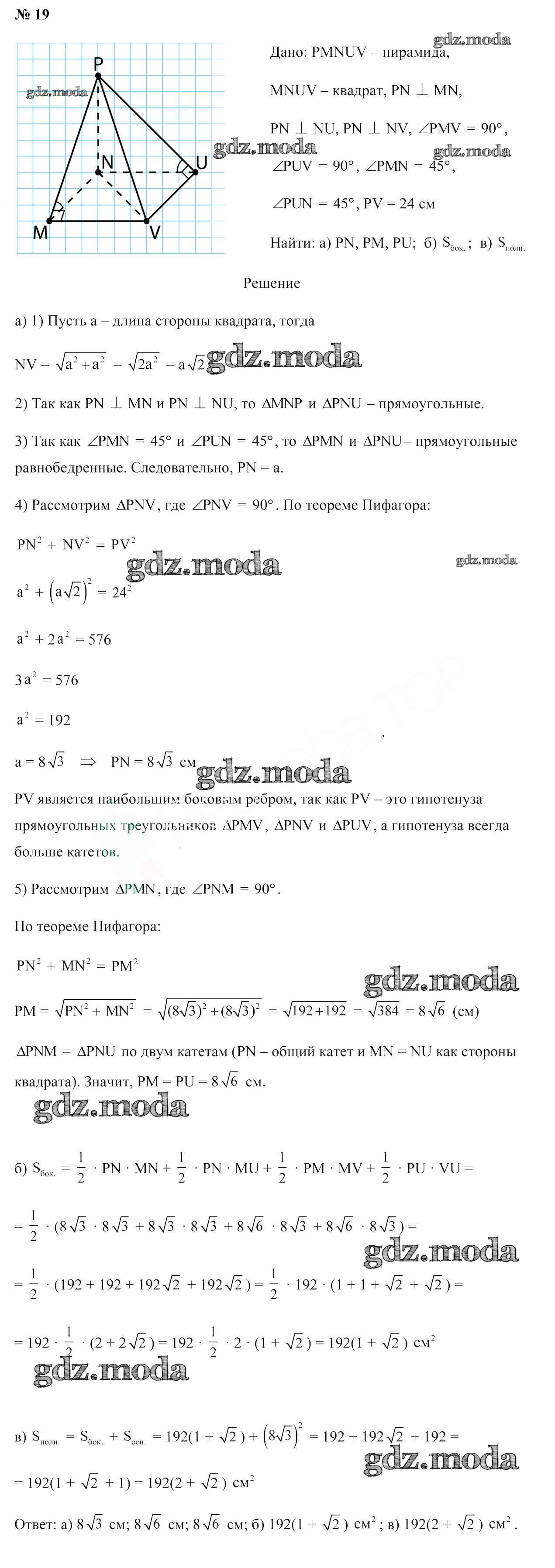 ОТВЕТ на задание № 19 Учебник по Геометрии 10 класс Латотин