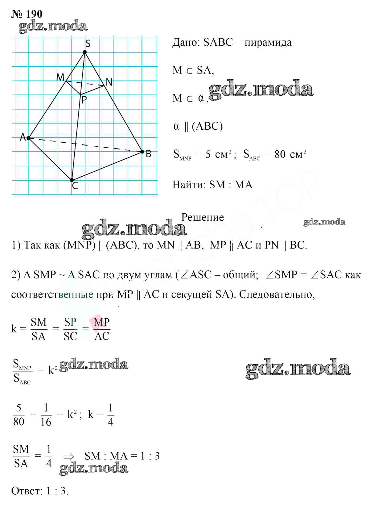 ОТВЕТ на задание № 190 Учебник по Геометрии 10 класс Латотин