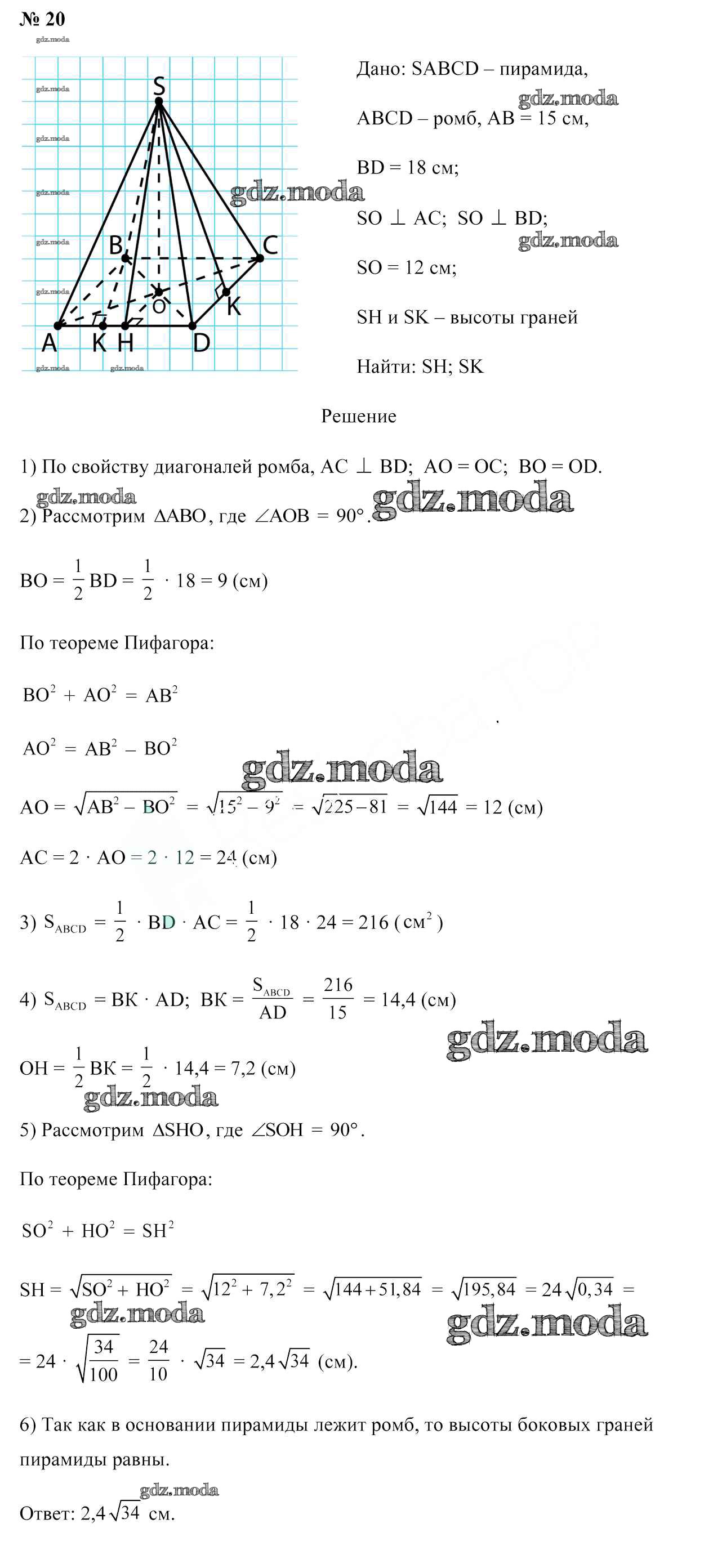 ОТВЕТ на задание № 20 Учебник по Геометрии 10 класс Латотин