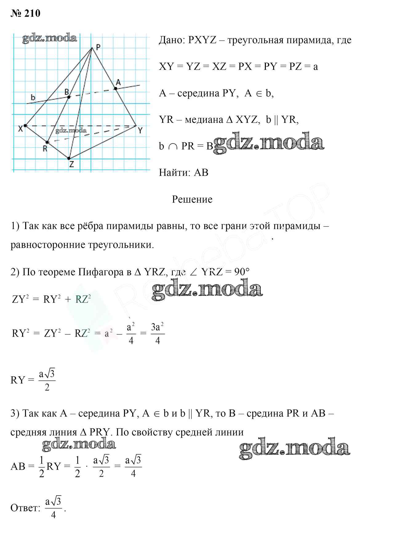 ОТВЕТ на задание № 210 Учебник по Геометрии 10 класс Латотин