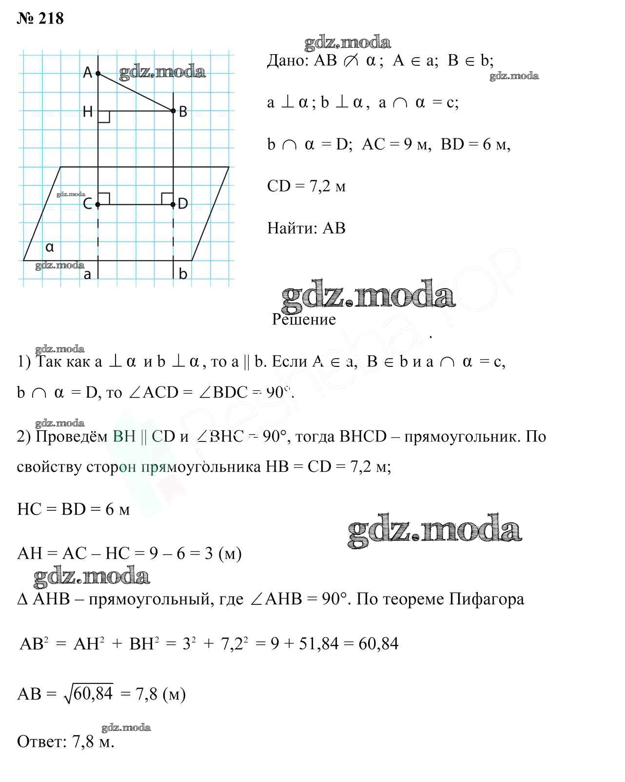 ОТВЕТ на задание № 218 Учебник по Геометрии 10 класс Латотин