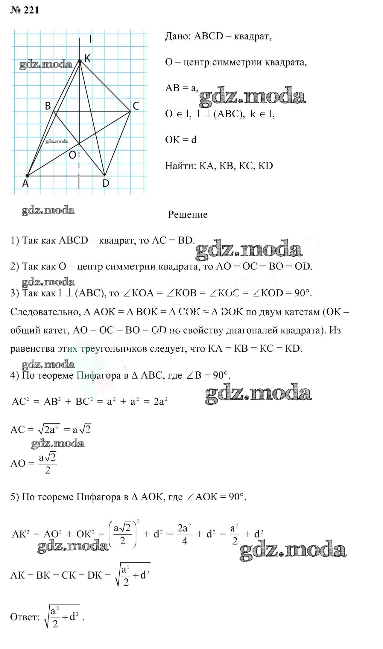 ОТВЕТ на задание № 221 Учебник по Геометрии 10 класс Латотин