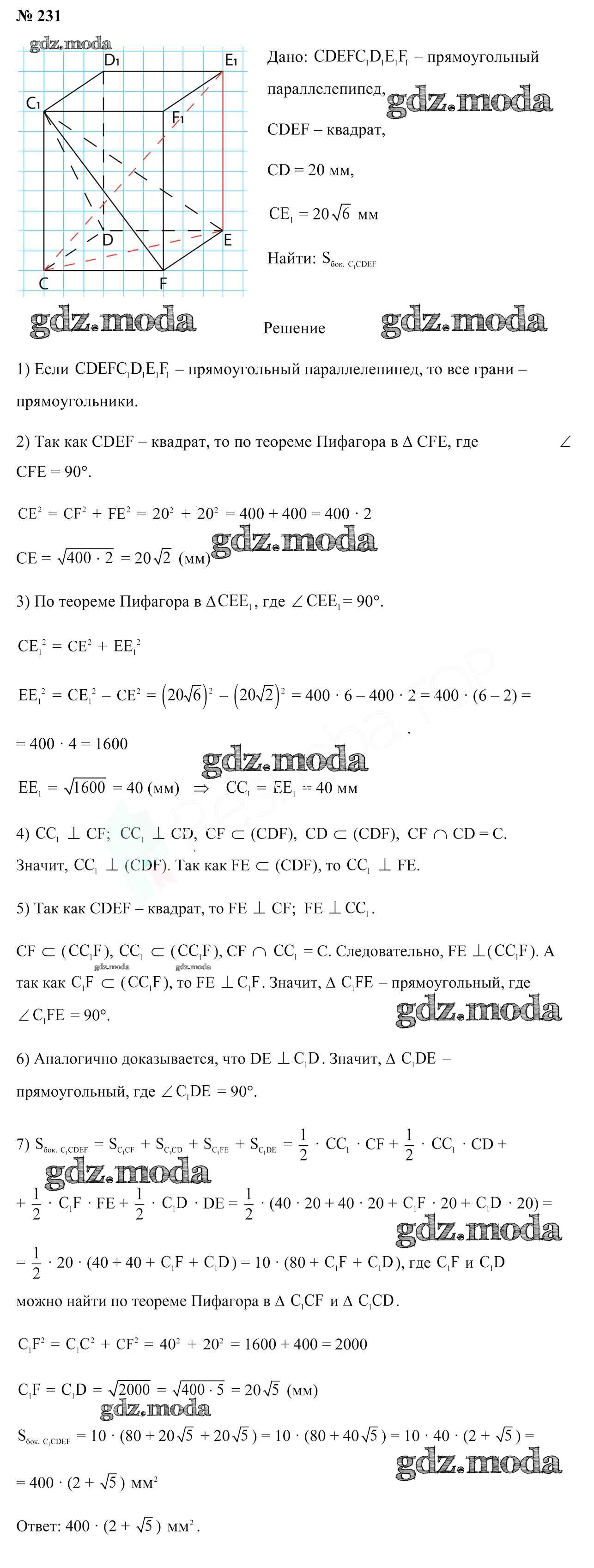 ОТВЕТ на задание № 231 Учебник по Геометрии 10 класс Латотин