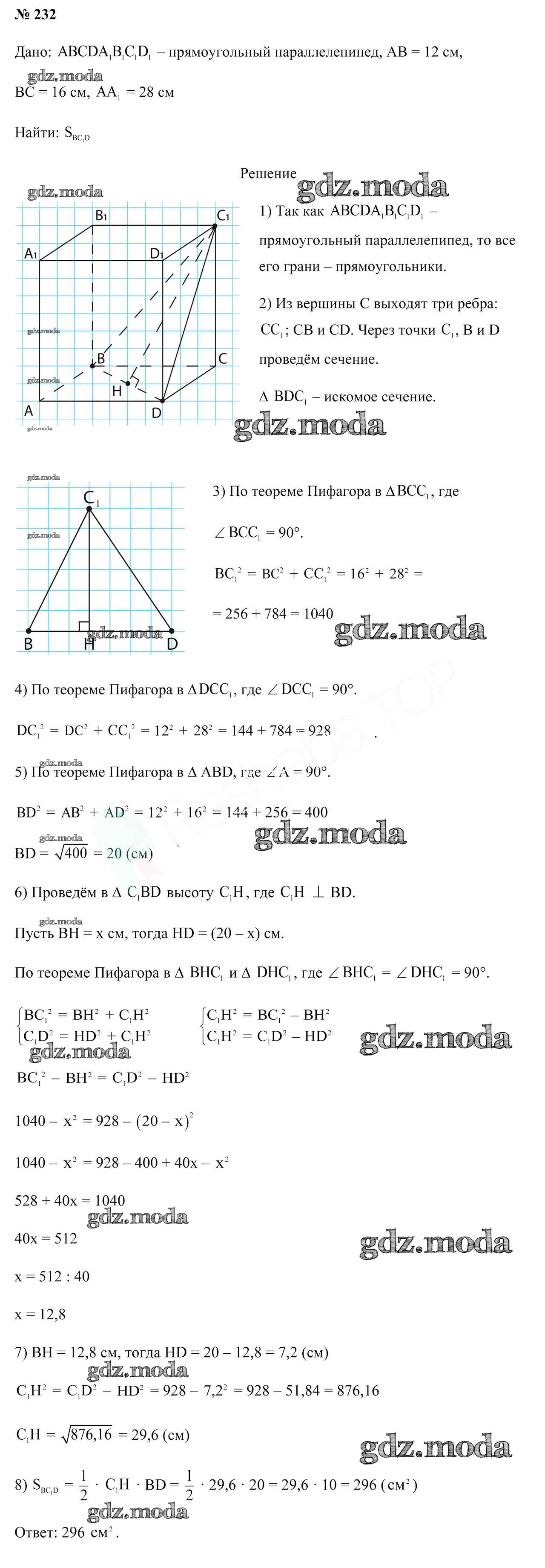 ГДЗ решение к заданию № 232 Геометрия 10 класс Латотин Л.А. Народная асвета 2020 бесплатно на гдз.мода!