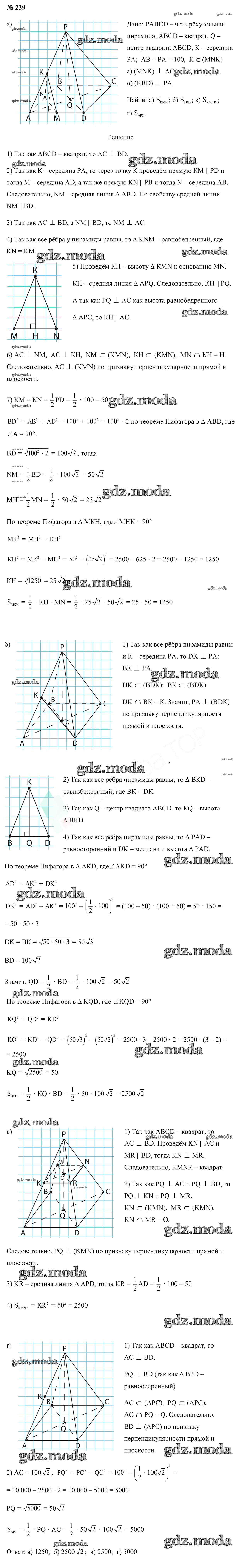ОТВЕТ на задание № 239 Учебник по Геометрии 10 класс Латотин