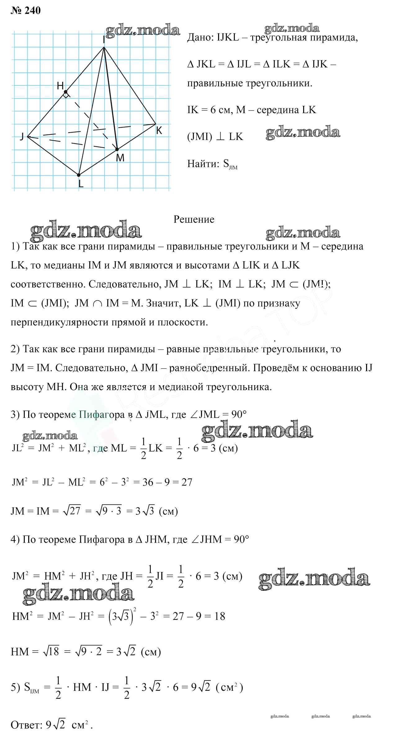 ОТВЕТ на задание № 240 Учебник по Геометрии 10 класс Латотин